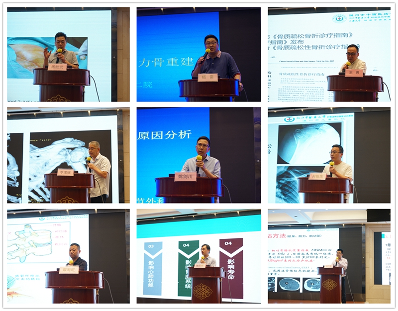 中國中醫(yī)科學院中青年名中醫(yī)、中華中醫(yī)藥學會骨傷科分會青年副主任委員于杰教授主講《頸椎病診療規(guī)范及特色療法研究》;解放軍總醫(yī)院第四醫(yī)學中心、海軍骨科專業(yè)委員會主任委員阮狄克教授講授《退行性腰椎滑脫單純減壓與輔以融合的循證醫(yī)學依據(jù)》;浙江中醫(yī)藥大學副校長、浙江省中醫(yī)院黨委書記吳承亮教授講授《腎虛腰痛發(fā)病機制的初步研究》;溫州醫(yī)科大學附屬第二醫(yī)院骨科醫(yī)院副院長王向陽教授講授《老年脊柱失狀位失平衡的治療策略及腦功能研究》;浙江省立同德醫(yī)院骨傷科主任王健教授講授《加速康復在脊柱外科圍術期的應用》;浙江省名中醫(yī)、溫州市中醫(yī)院黨委書記王慶來教授講授《頸椎病藥物治療心得》;溫州市中青年名醫(yī)、溫州市中西醫(yī)結(jié)合醫(yī)院副院長王蕭楓教授講授《水針刀治療頸椎病頸性眩暈》等。