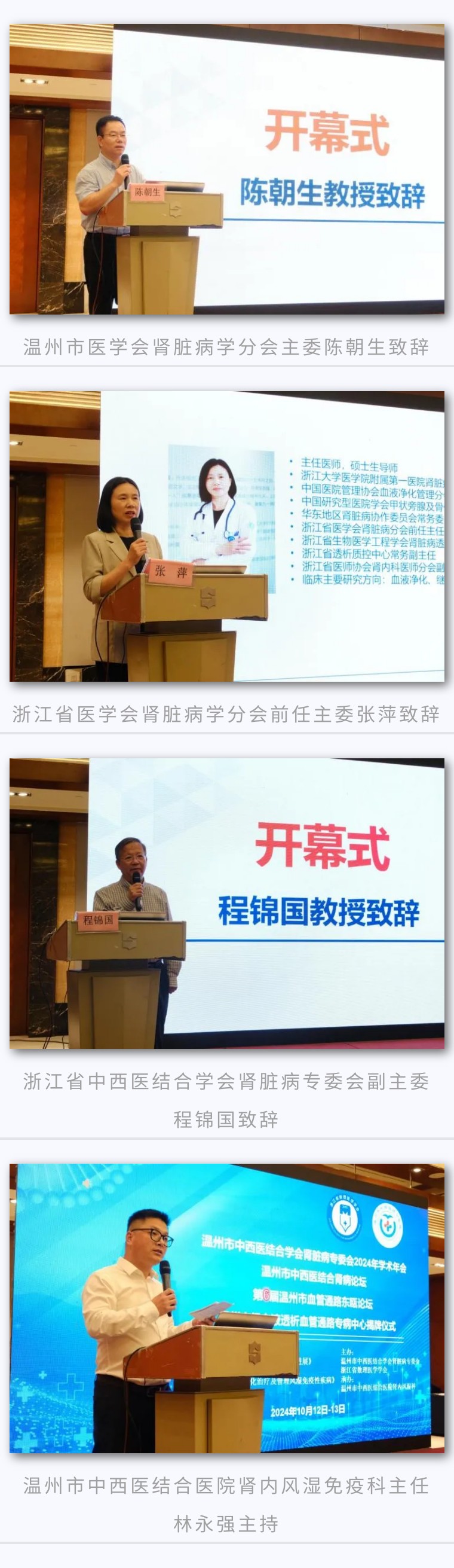 此次大會由溫州市中西醫(yī)結(jié)合學(xué)會腎臟病專委會主辦,溫州市中西醫(yī)結(jié)合醫(yī)院腎內(nèi)風(fēng)濕免疫科承辦。開幕式由溫州市中西醫(yī)結(jié)合學(xué)會腎臟病專委會主任委員林永強(qiáng)主持,溫州市醫(yī)學(xué)會腎臟病學(xué)分會主委陳朝生、浙江省醫(yī)學(xué)會腎臟病學(xué)分會前任主委張萍、浙江省中西醫(yī)結(jié)合學(xué)會腎臟病專委會副主委程錦國分別致辭。