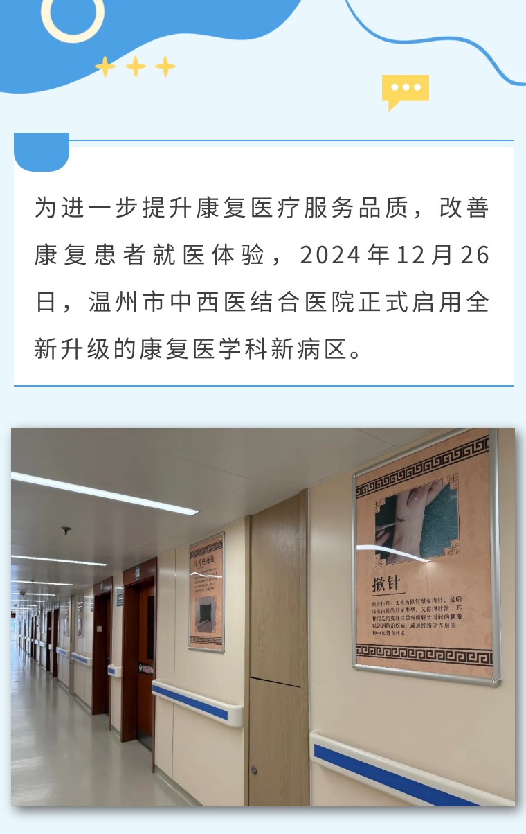 新病區(qū)的啟用標(biāo)志著溫州市中西醫(yī)結(jié)合醫(yī)院在提升患者就醫(yī)體驗(yàn)方面又邁出了堅(jiān)實(shí)的一步,康復(fù)醫(yī)學(xué)科將以更加人性化、專業(yè)化的服務(wù),為廣大患者開(kāi)啟康復(fù)新篇章。